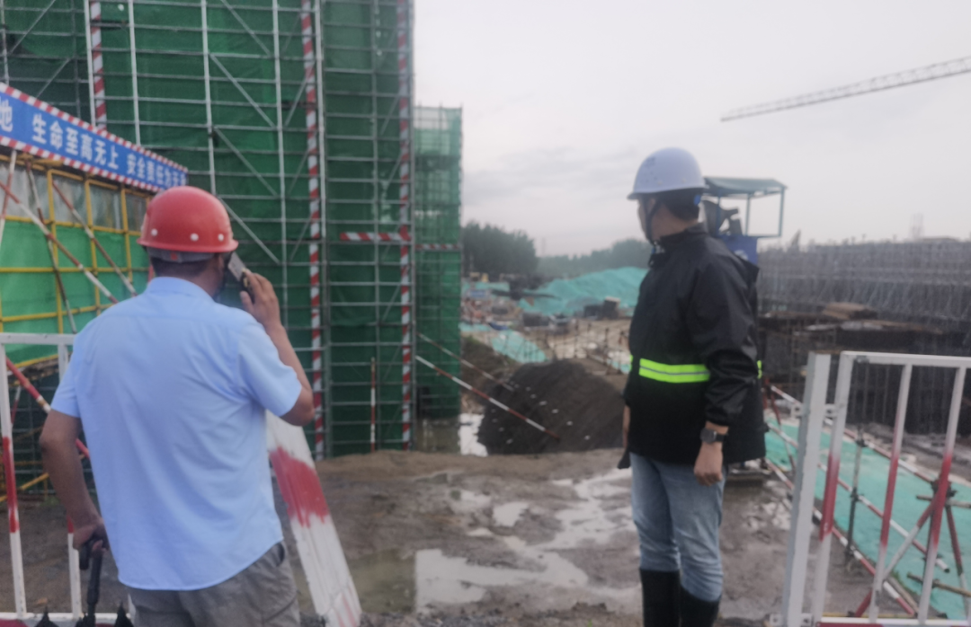 7月20日,地产集团和川项目部连夜启动防汛应急预案,防汛应急队伍20余人全部在岗备勤,潜水泵、铁锹、雨衣、雨靴、防汛沙袋等排水防汛物资完成点验、检修,确保降雨时随调随用。同时对基坑,高堆土、脚手架、电气设备等关键设施、重点部位进行巡查,填补漏洞。本次降雨过程,施工现场未出现任何基坑坍塌、触电漏电及工程实体受损等事故,现场清理和积水抽排工作正紧张而有序的进行。