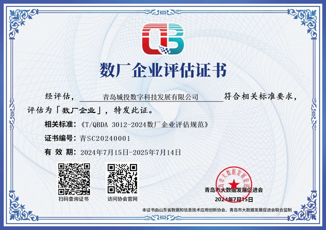 青岛城投集团旗下数科公司荣登2024年青岛市首批“数厂企业”名单