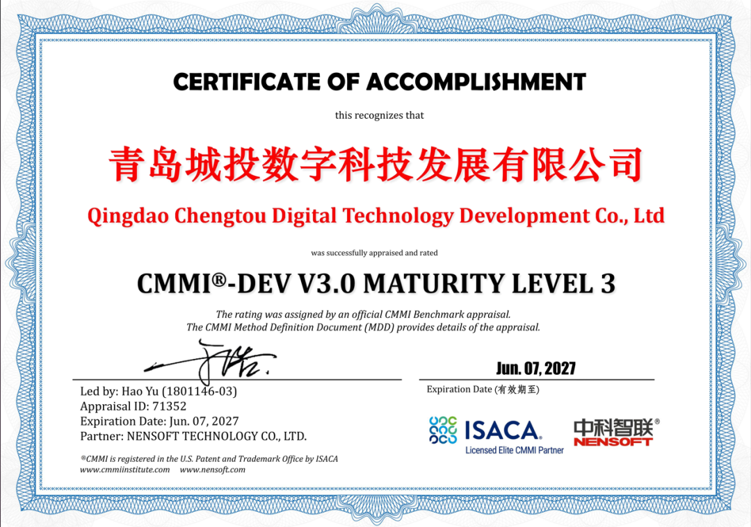 近日,青岛城投集团旗下数科公司凭借在项目管理及信息技术服务领域的卓越表现,顺利获得“CMMI 3级”与“ITSS 3级”认证,标志着数科公司在软件研发管理与信息技术服务标准化方面迈上了新的台阶。