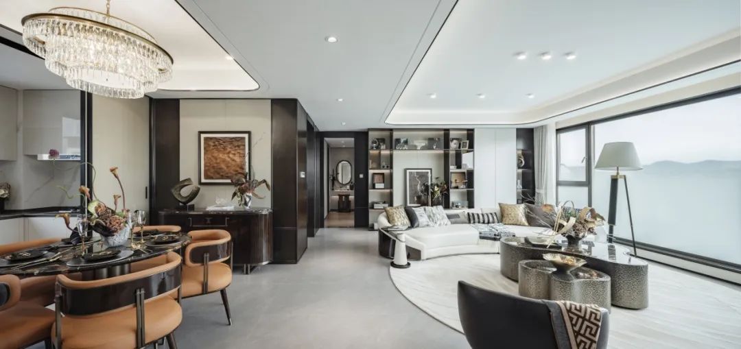 在产品设计上,地产集团和川项目精心规划了建面约142㎡、170㎡、228㎡三大墅级洋房户型。这些户型均采用贯通梯设计、私家电梯厅,南向面宽达到14-21m,层高在3.1-3.2米之间,实现了空间利用的最大化。 客餐厨一体化设计以及3+N灵动户型,让居住空间更加灵活多变。此外,落地窗距地面仅15cm,极大地拓宽了视野,提升了居住舒适度。步入实体样板间,可远观崂山秀美,近揽卧龙山巍峨,自然美景与居住空间和谐共生,为居者带来极致的居住体验。