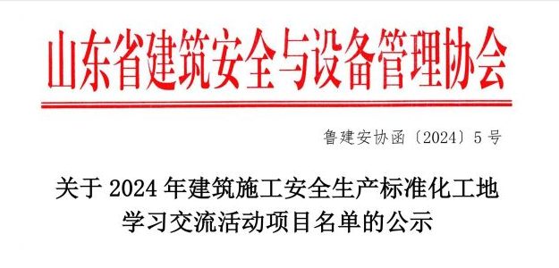 入选山东省2024年建筑施工安全生产标准化工地学习交流活动项目