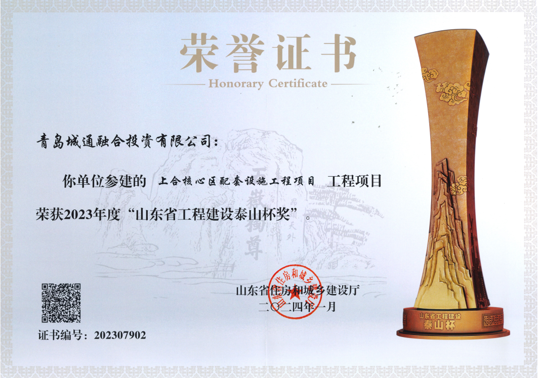 新机场连接线工程被山东省住房和城乡建设厅授予“2023年度山东省工程建设泰山杯”荣誉。