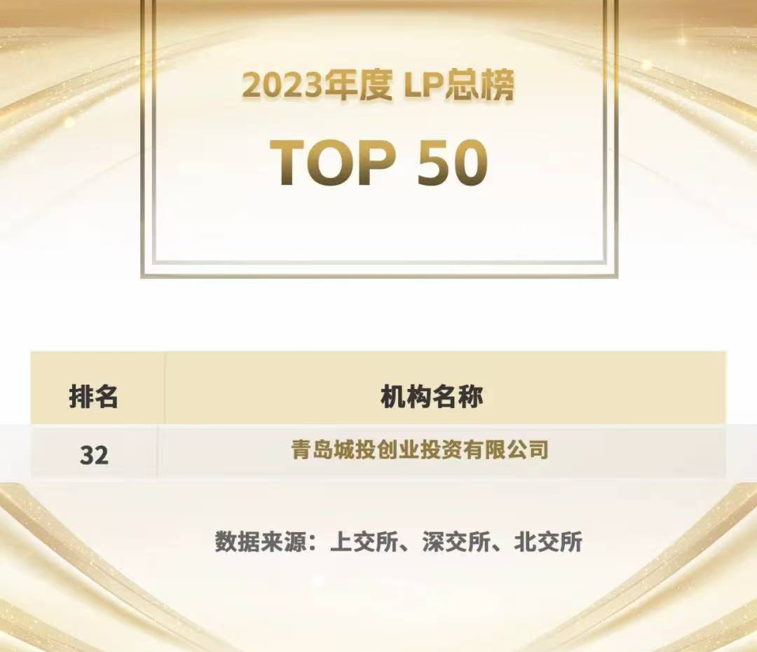 创投公司被国内母基金权威研究机构“LP投顾”评为2023年LP退出榜第32名国资LP退出榜第27名