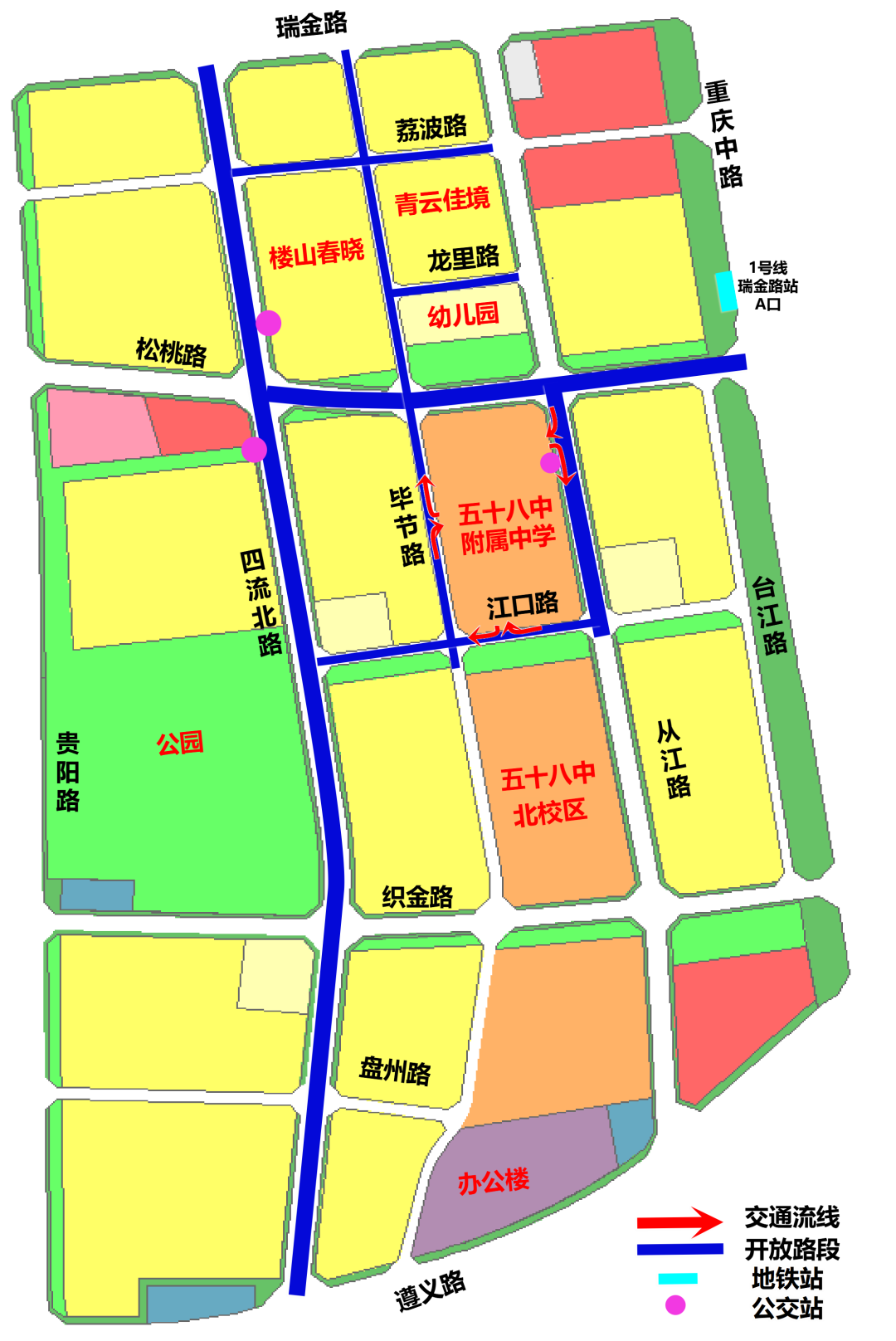 (图为片区道路开放路段示意图)