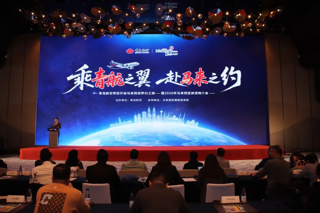 近日,青岛航空国内与国际航线推介会暨马来西亚旅游推介会在青岛举行。推介会由马来西亚国家旅游局支持,青岛城投集团旗下青岛航空主办,以“织密航线网络、深化跨界协作、赋能品质出行”为主题,通过航线网络推介、区域特色分享等,全面展现青岛航空在差异化国际航网布局、深化多元合作方面的最新成果,共同推动文旅产业与民航业深度融合、双向赋能,共探“航空+旅游”发展新路径。马来西亚国家旅游局、砂拉越旅游局、槟城旅游局,青岛市文化和旅游局、青岛市交通运输局、青岛机场集团、青岛航空等相关领导出席。