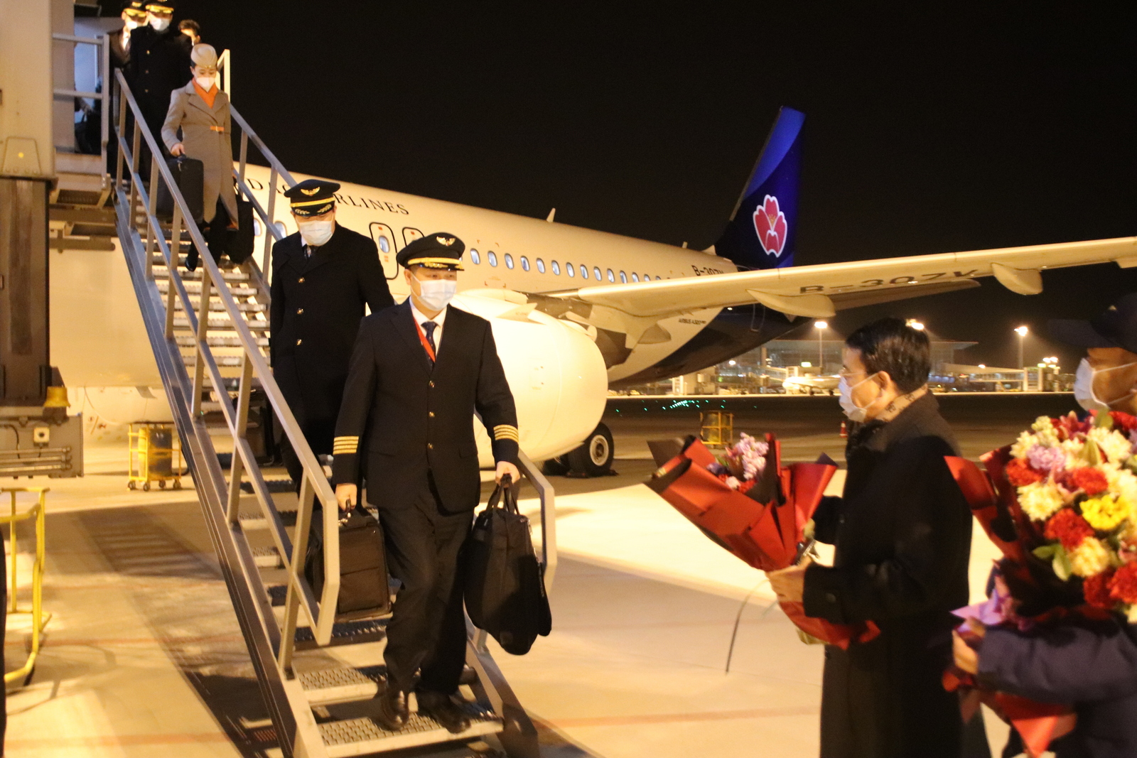青岛城投集团党委书记、董事长陈明东一行前往青岛胶东国际机场机坪,迎接执行2021年最后一个航班的机组人员平安归来,代表城投集团向全体机组人员和坚守岗位的一线员工表达慰问,感谢大家一年来为青岛航空的安全运行和发展做出的贡献,并送上新年祝福,希望大家在新的一年再接再厉,继续为公司安全运行和发展贡献力量。城投集团董事刘裕良,城投集团党委委员、副总经理高玉贞,青岛航空公司主要领导陪同接机。