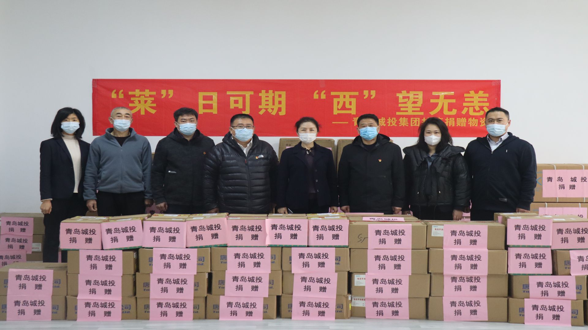 (图为城投集团工会向莱西院上镇捐助防疫物资)