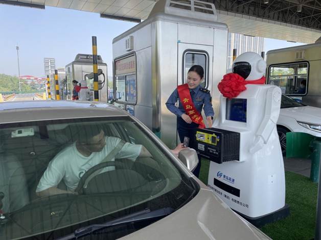 5月26日,山东省首款“人形智能车道收费机器人”在青岛城投集团旗下交发集团所辖青岛东收费站正式启用。