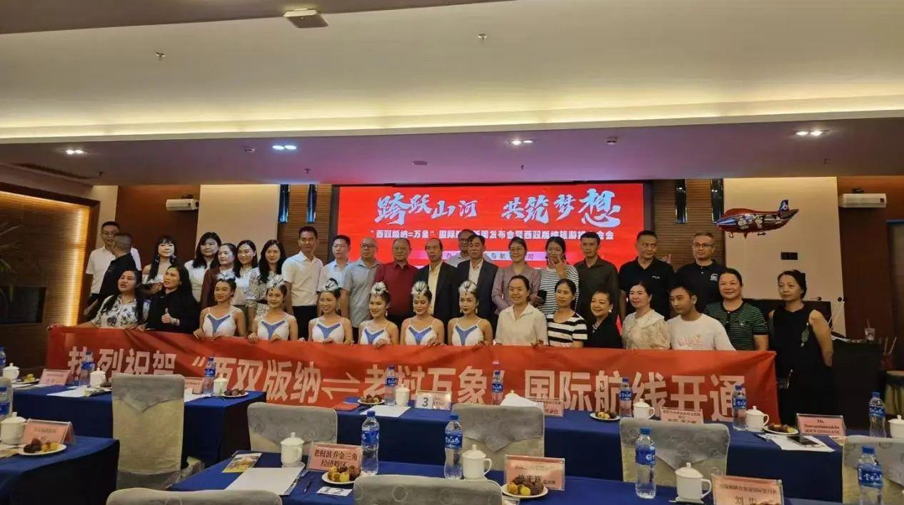 由青岛城投集团旗下青岛航空执飞的中国西双版纳至老挝万象国际航线将于8月21日正式通航。该航线的开通标志着中老两国在航空运输领域的合作迈出了新的步伐,为两地人民的交流往来搭建起了一座更加便捷的空中桥梁。(图为“西双版纳=万象”国际航线新闻发布会)为此,青岛航空联合西双版纳州文化和旅游局、西双版纳旅游行业协会、老挝驻西双版纳景洪领事办公室、老挝乌多姆赛省新闻文化和旅游厅,于8月8日在景洪市举行“西双版纳=万
