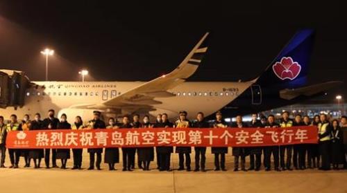 2023年12月31日23时55分,随着年内最后一架航班在青岛胶东国际机场平稳落地,青岛城投旗下青岛航空2023全年安全运营平稳收官,顺利实现第十个安全飞行年。31日晚,集团党委委员、公司党委书记、董事长辛晓东,总裁方毅等一行前往青岛胶东国际机场机坪,慰问坚守岗位的公司一线员工,并迎接2023年度最后一天执飞航班的机组人员平安归来。(接机合影)作为青岛民航交通的代表力量和青岛的空中城市名片,2023年,青岛航空紧抓国内民