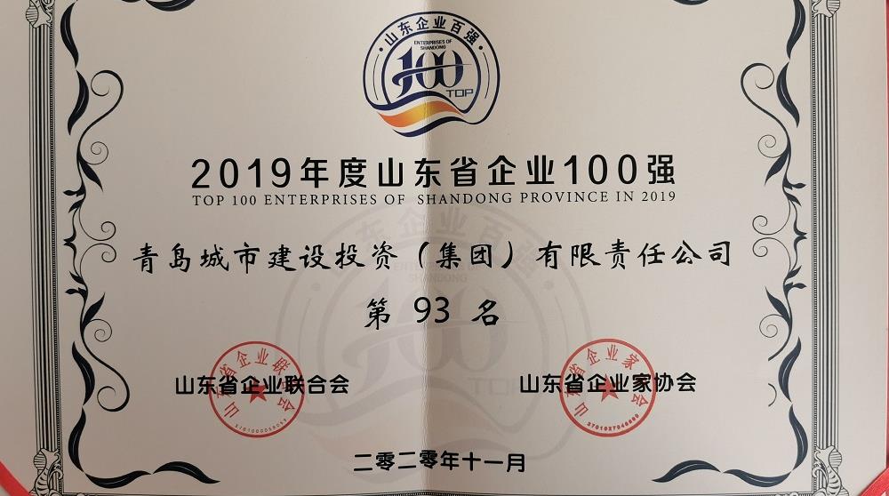11月11日,山东省百强企业发布会暨工业经济发展形势报告会在济南召开,山东省工业和信息化厅、山东省企业联合会依据企业2019年营业收入年报数据等,通过组织审核及综合评定,确定并正式发布了2019年度山东省综合百强企业名单,我集团成功入围,位列第93位。