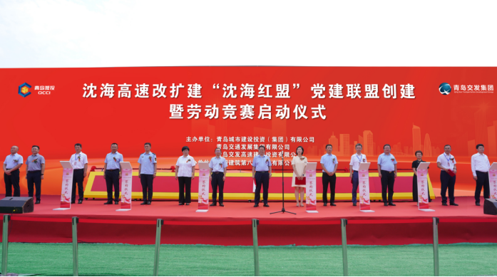 为推动学习贯彻习近平新时代中国特色社会主义思想主题教育走深走实,以党建引领项目建设加力提速,8月18日上午,由青岛城投集团旗下交发集团投资建设的沈海高速南村至青岛日照界段改扩建工程“沈海红盟”党建联盟创建暨劳动竞赛启动仪式圆满举行。青岛市总工会、青岛市交通运输局、城投集团、青岛市电视台、西海岸新区交通运输局、胶州市交通运输局、平度市交通运输局、交发集团相关负责人,各联创共建单位党组织负责人以及各参建